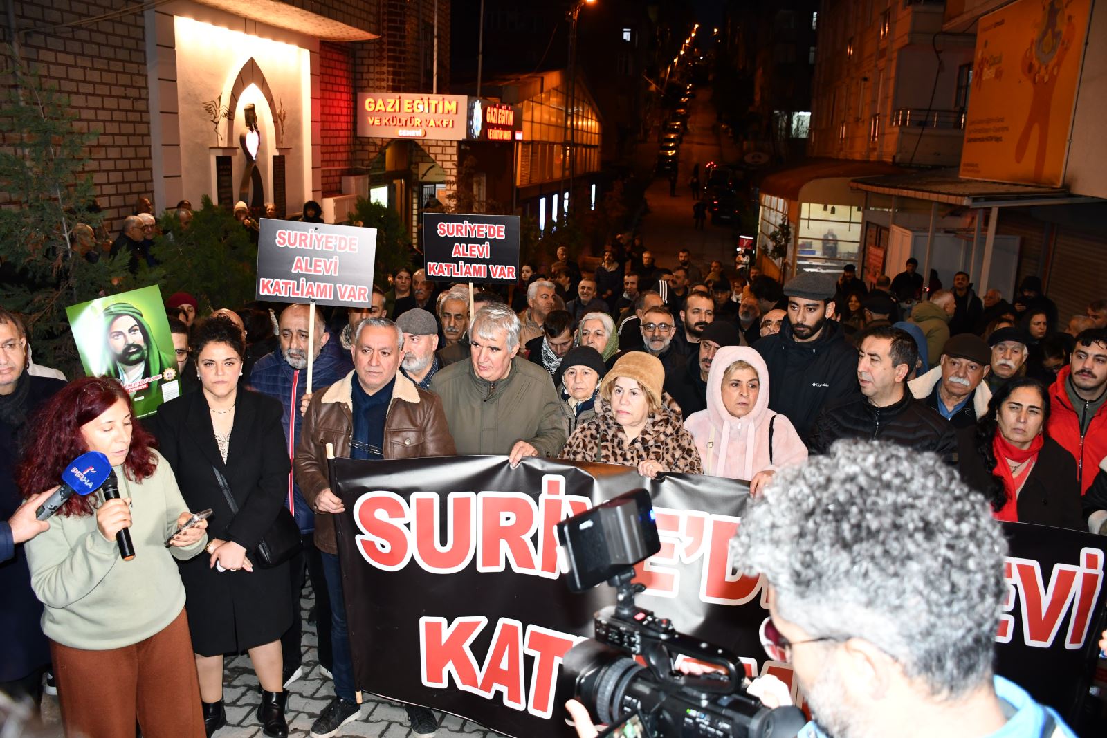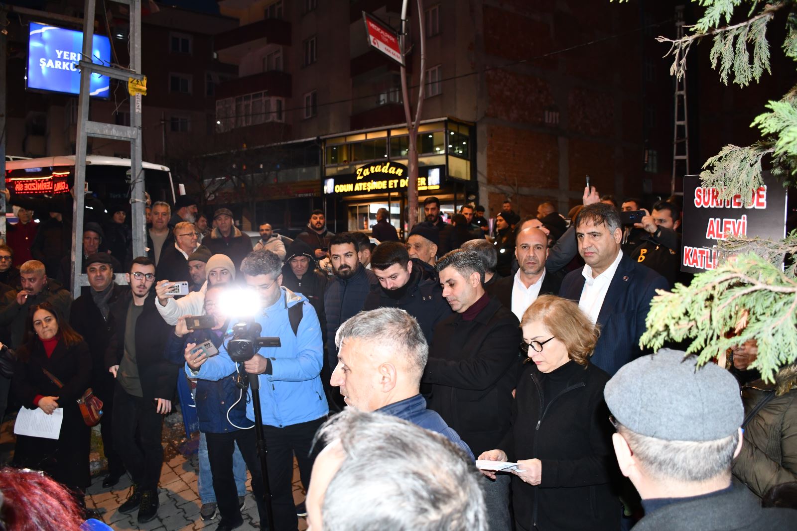 Alanı dolduran kalabalığa hitap eden Mevhibe Akdeniz, kararlı, yürekli ve insanlık onurunu esas alan konuşmasıyla büyük takdir topladı. Suriye’de yalnızca inançları ve kimlikleri nedeniyle Alevilerin, Kürtlerin, Dürzilerin, Êzidilerin ve Ermenilerin hedef alındığını vurgulayan Akdeniz, bu zulme karşı susmayacaklarını, geri adım atmayacaklarını haykırdı. Onun bu cesur ve vicdanlı duruşu, alandaki binlerce insanın yüreğine umut ve güç verdi.